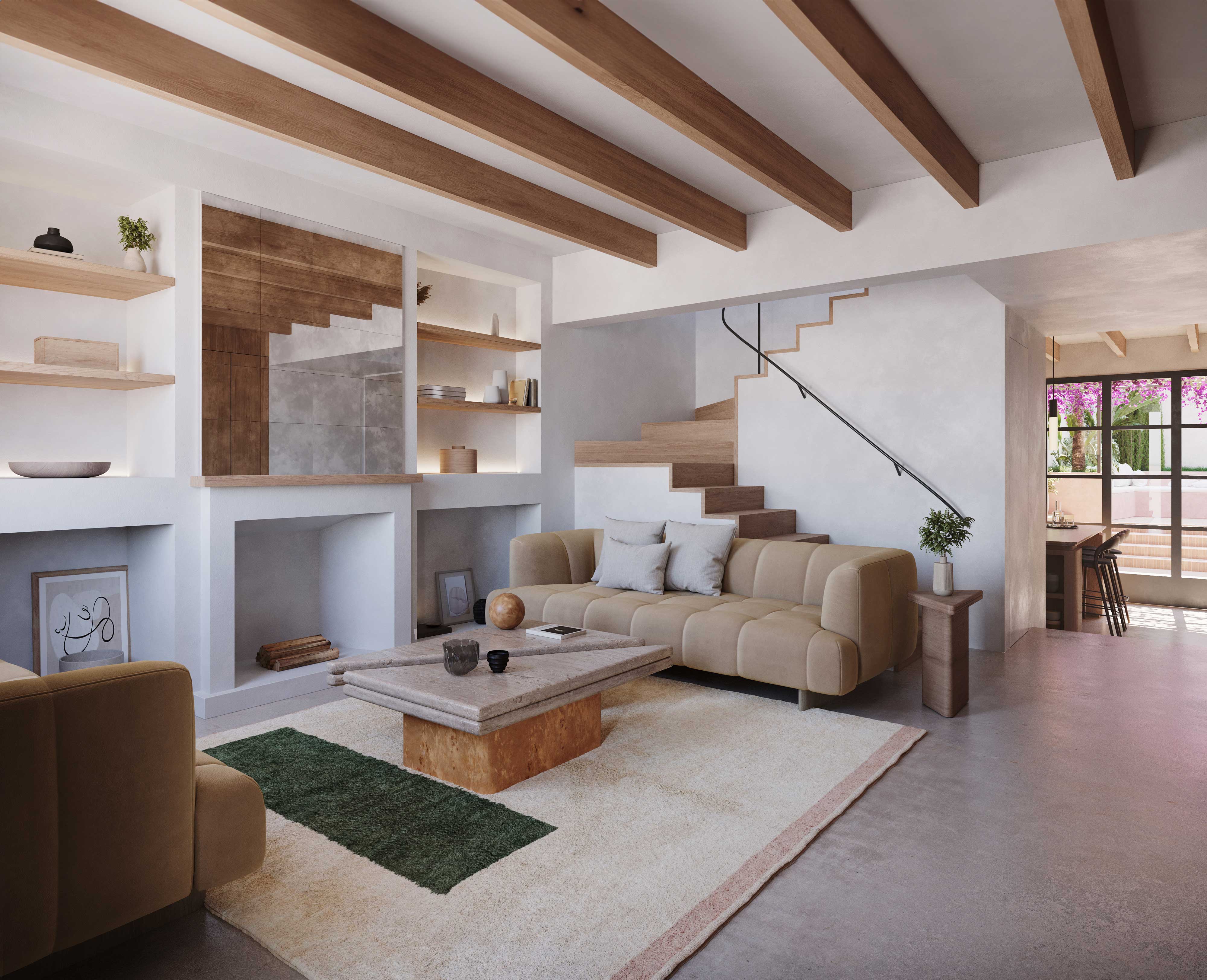 This three-storey house layers old and new. Slim pool, rooftop terrace, and open-plan living across levels. Natural textures and a preserved historic façade give it warmth and elegance.