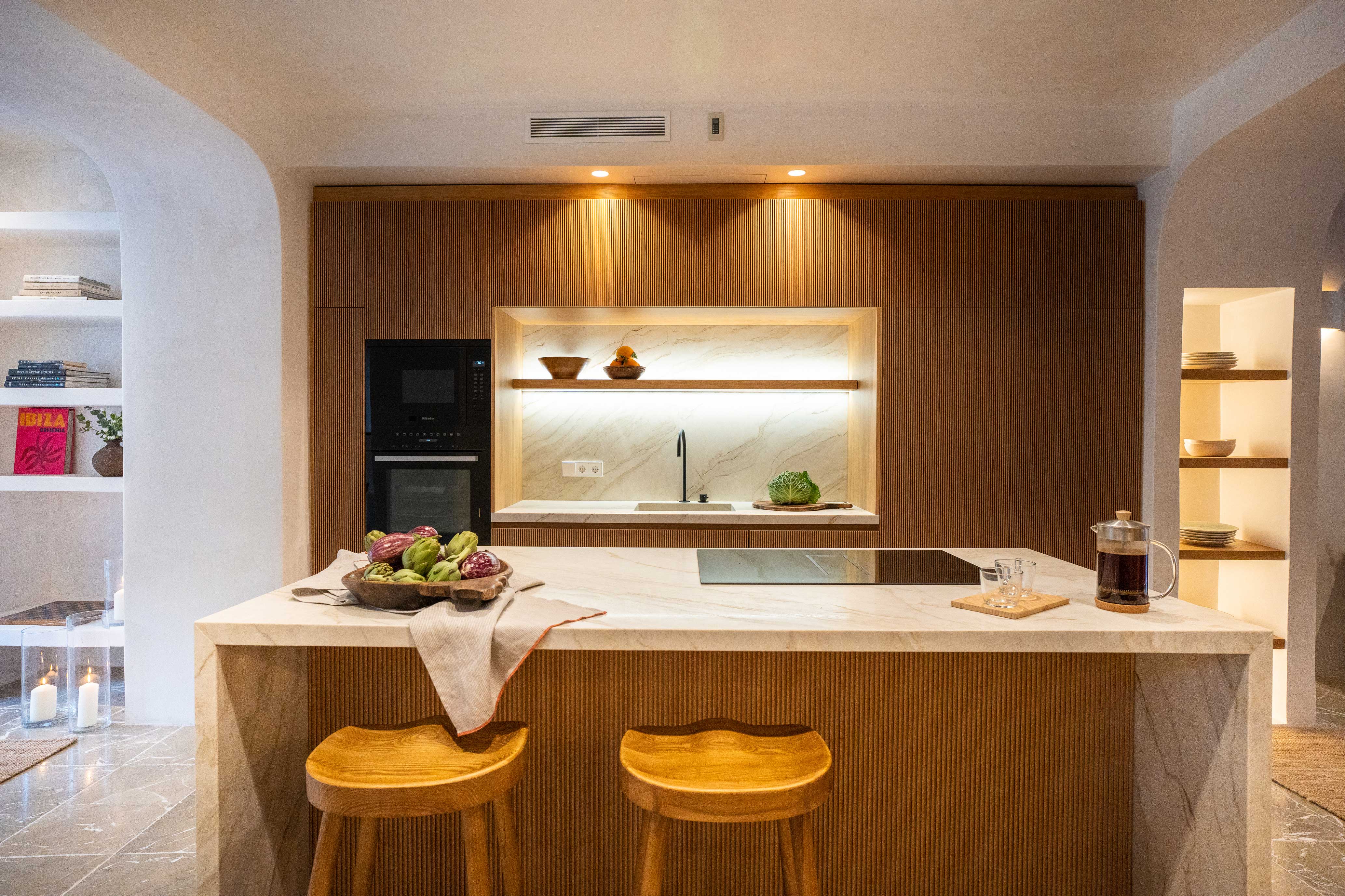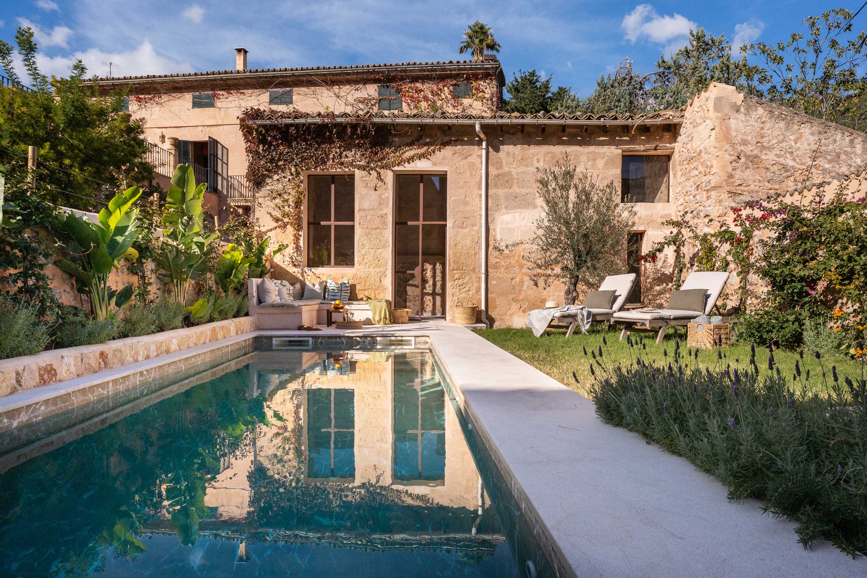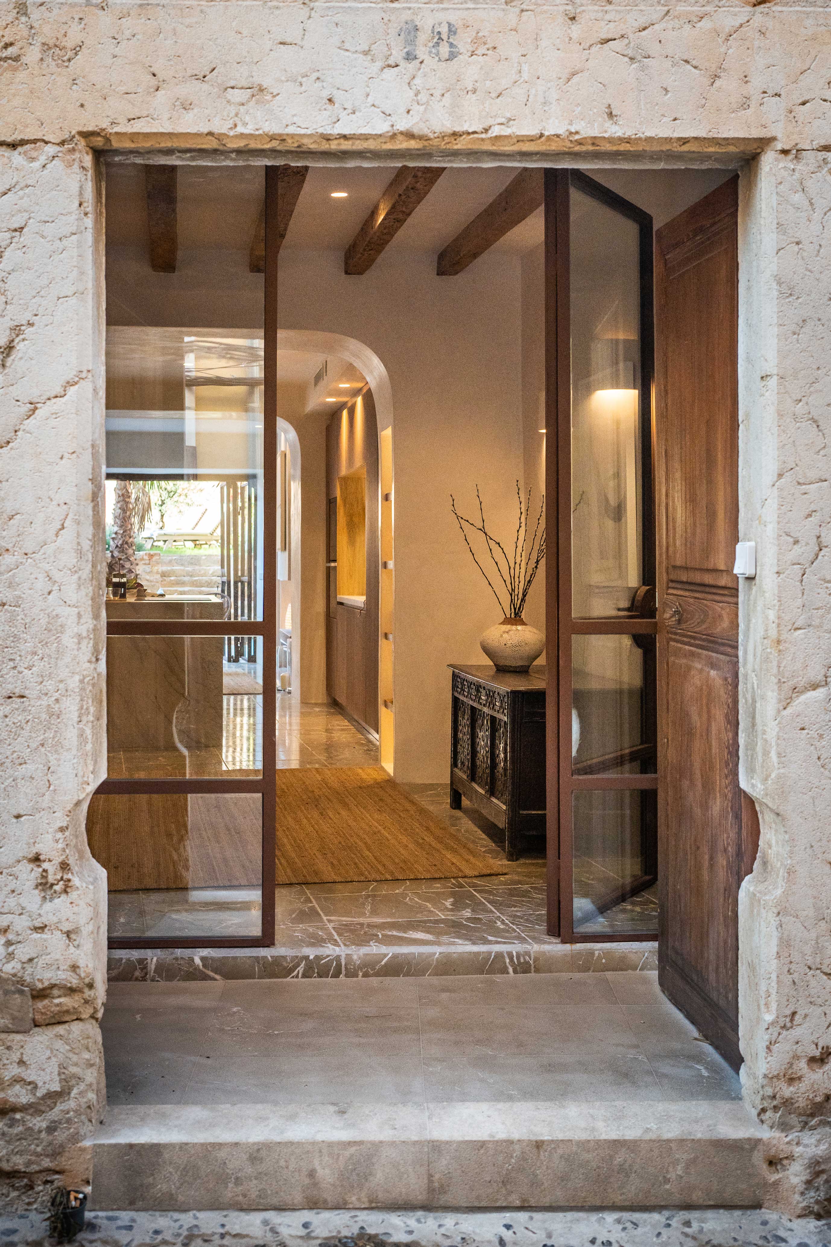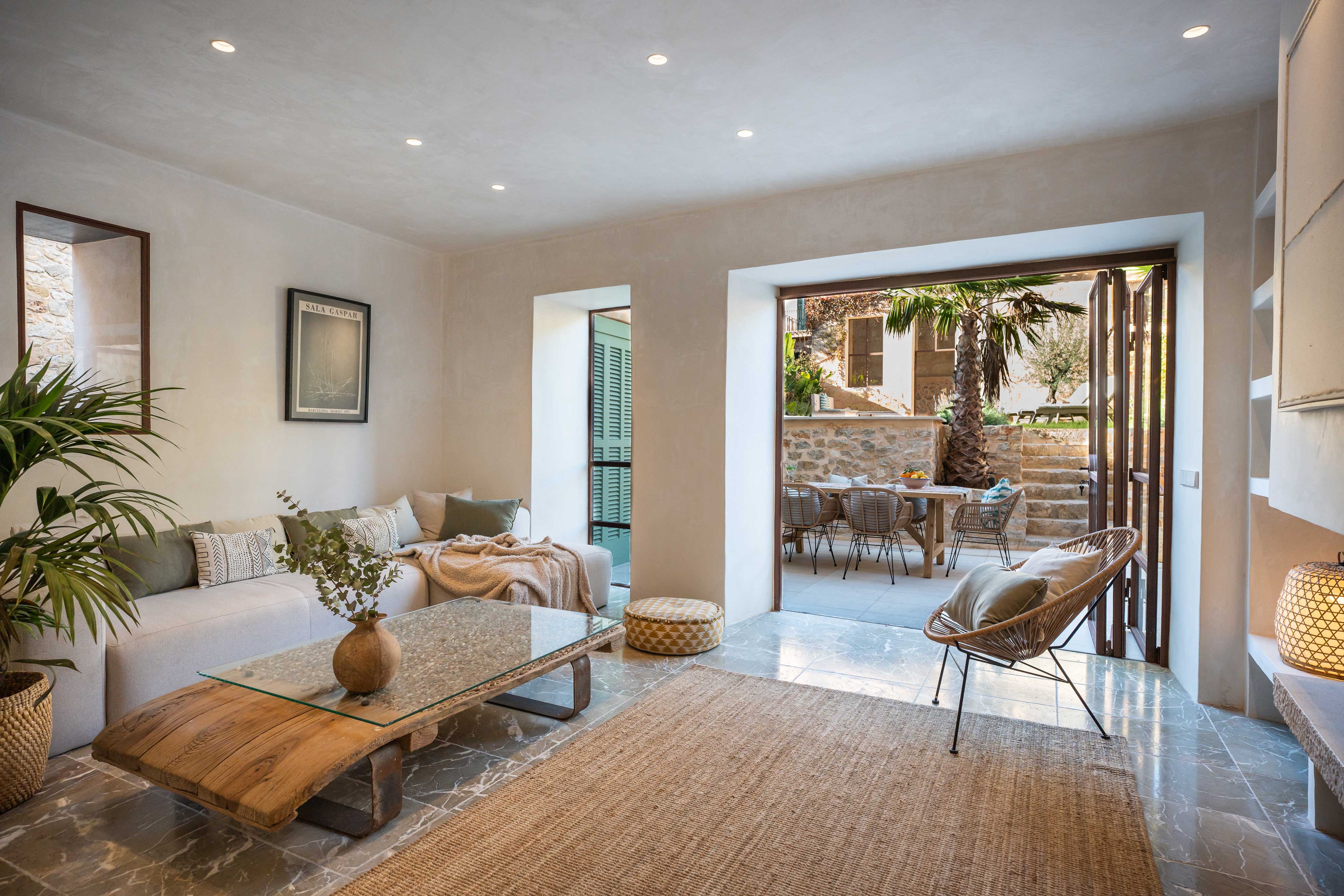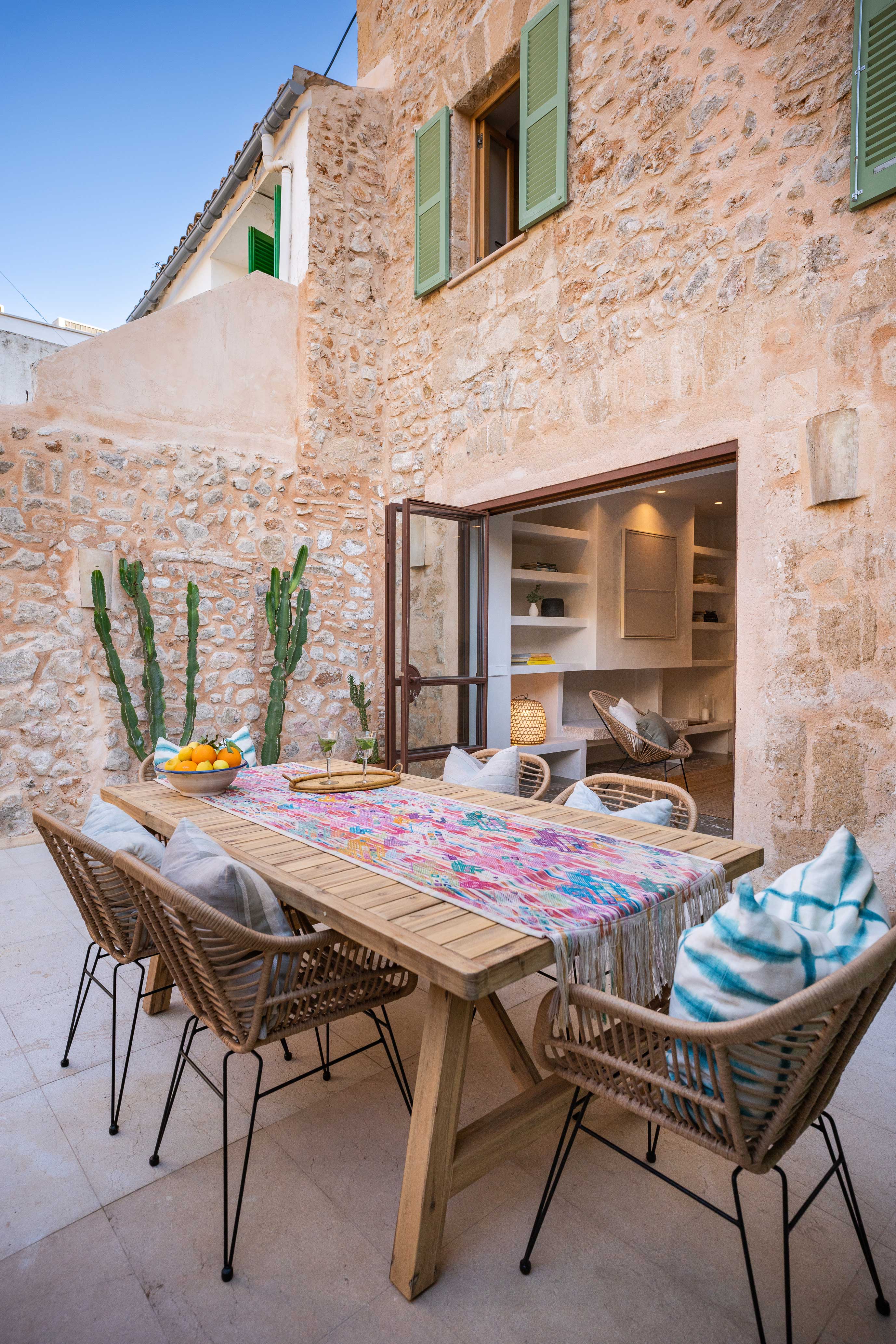 This stone-fronted townhouse has a warm, grounded feel. A generous garden, separate guest annex, and corner plot bring in loads of light. Traditional charm meets relaxed design—Benissalem stone floors, oak details, and elegant proportions throughout.